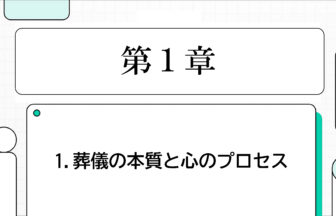 1-1.葬儀の本質と心のプロセス現代社会では、死や葬儀について学ぶ機会が減り「形だけの儀式」になってしまうことに悩む人が増えています。大切な人をどう…